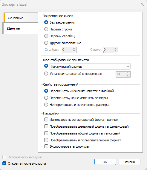 3. Экспорт формул управляется параметром ExportFormulas. Чтобы использовать эту функцию, включите галочку в настройках экспорта (раздел Другие → Экспортировать формулы).