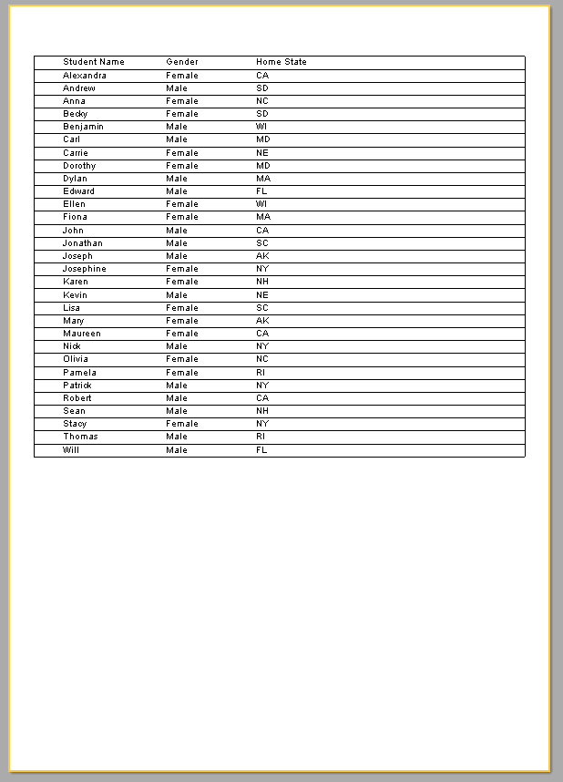 Пример итогового результата работы с Google Sheets в FastReport .NET – данные, которые были успешно получены из облачной таблицы, отображены в отчёте.