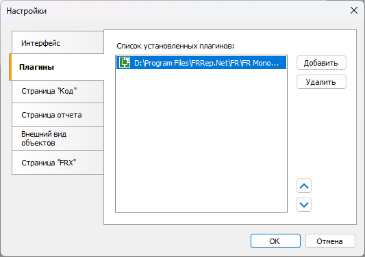 После сборки проекта подключаем плагин к FastReport. Для работы в дизайнере отчётов добавляем собранный DLL-файл с помощью меню настроек: