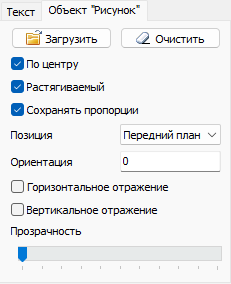 Кнопка «Загрузить» – вызывает диалог загрузки изображения из файла (поддерживаются форматы wmf, emf, gif, tiff, svg, png, ico, bmp, jpg).