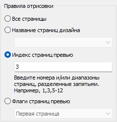 Группа переключателей «Правила отрисовки» позволяет привязать текущий редактируемый водяной знак к страницам отчета. Для правил отрисовки могут быть заданы следующие значения: