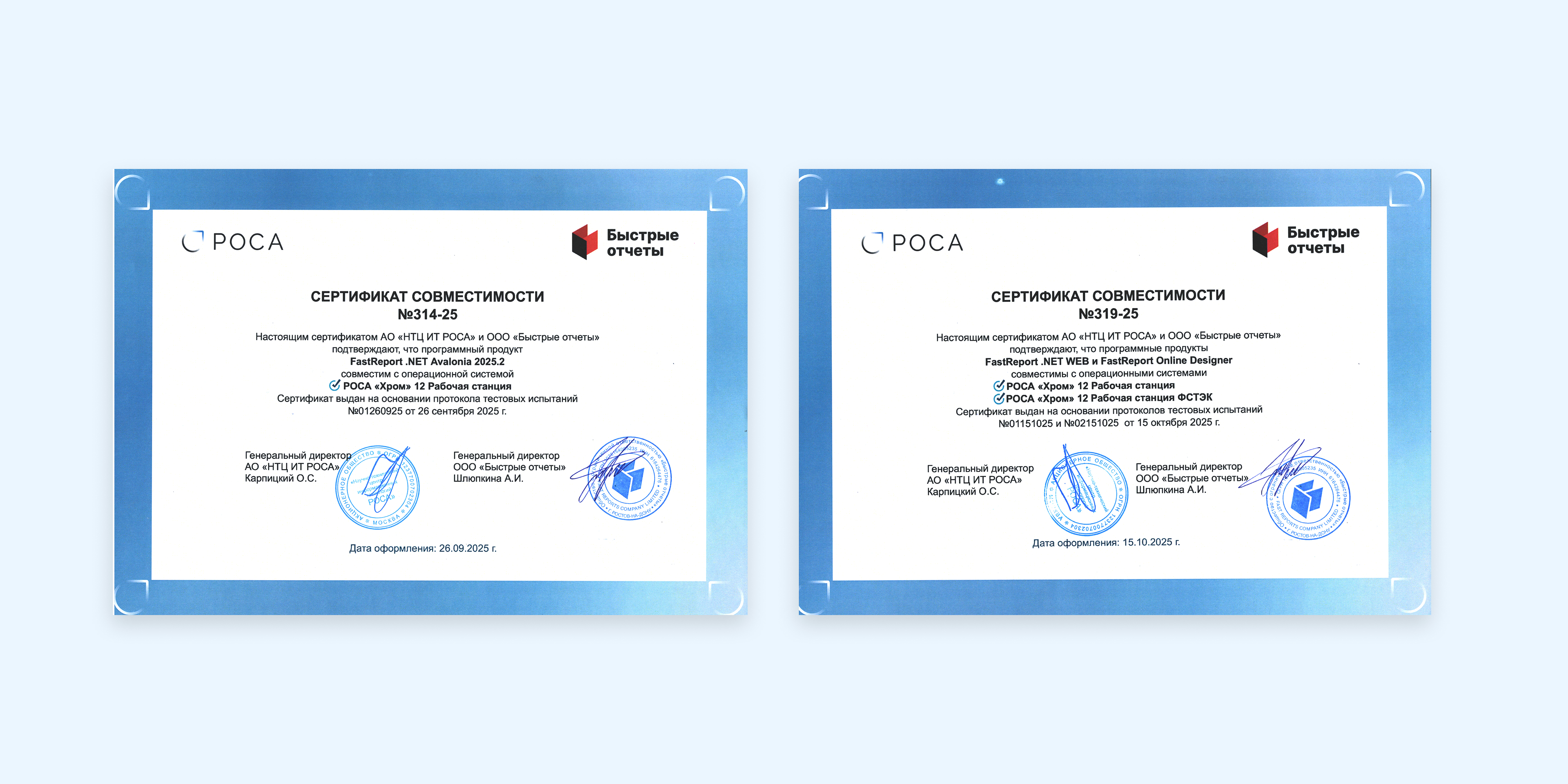 Компания АО «НТЦ ИТ РОСА» официально подтвердила, что программные продукты FastReport .NET Avalonia, FastReport .NET WEB и FastReport Online Designer совместимы с операционными системами РОСА «Хром» 12 Рабочая станция и ФСТЭК. Это обеспечивает более стабильную и эффективную работу приложений, основанных на этих программных решениях. Кроме того, компания «Быстрые отчеты» получила официальные сертификаты совместимости, подтверждающие успешное прохождение тестирования и интеграцию продуктов.