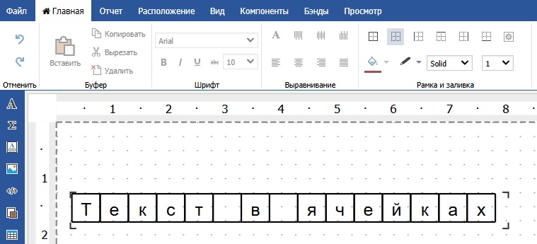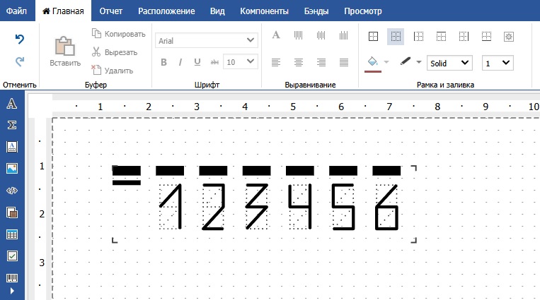 Реализован компонент Cellular Text для отображения текста в ячейках. Компонент размещает каждый символ текста в отдельной ячейке, что делает его идеальным для отображения данных, где требуется заполнение по одному символу в каждой ячейке (например, серийные номера, коды, номера документов).