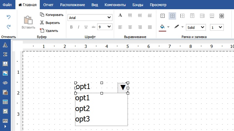 Добавлен компонент Combobox - выпадающий список с предустановленными значениями. Компонент позволяет пользователю выбирать один вариант из заранее определенного списка опций. Это особенно полезно при создании интерактивных отчетов и диалоговых форм, где требуется ограничить выбор пользователя конкретным набором значений.