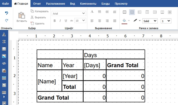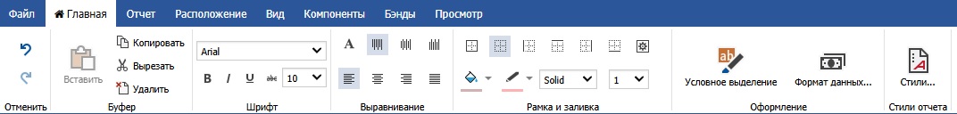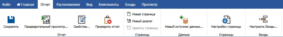 + Переработана главная панель инструментов: добавлены новые функции для настройки отчета, страниц, источников данных, формата и другие