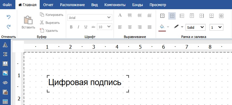 Добавлен компонент Digital Signature для работы с цифровыми подписями в отчетах. Компонент позволяет добавлять места для цифровой подписи, которые могут быть настроены еще на этапе дизайна отчета.