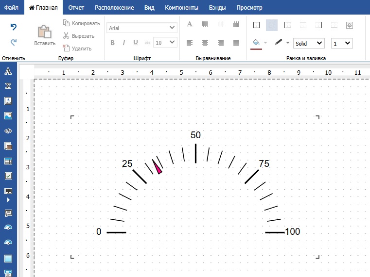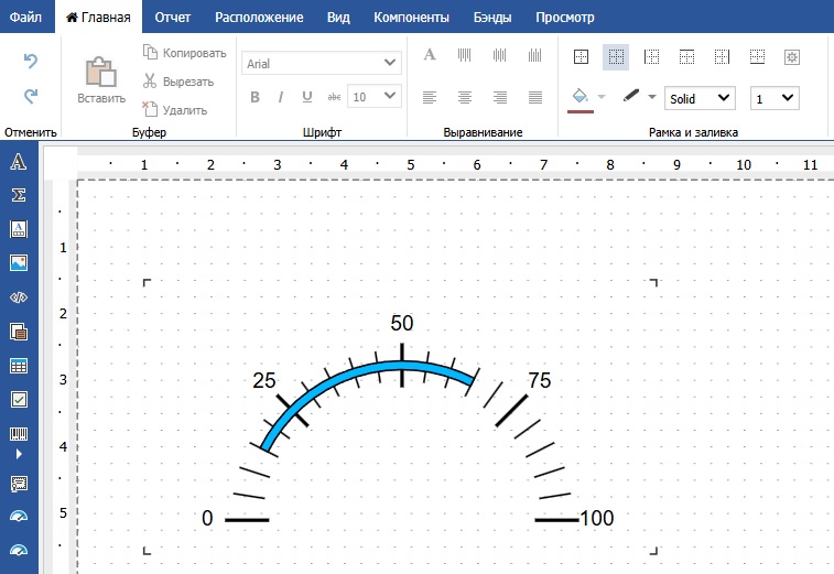 Добавлен компонент Gauge - датчик для визуализации числовых значений в виде шкалы или индикатора прогресса. Gauge позволяет наглядно отображать метрики, KPI и другие показатели в отчетах, делая их более понятными и визуально привлекательными.