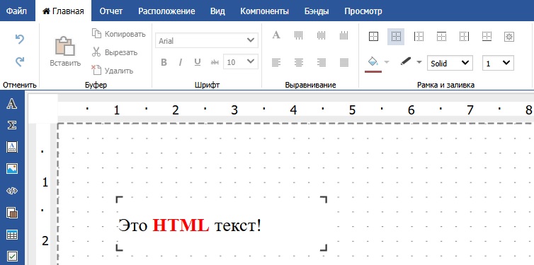 Реализован компонент HTML Object для отображения HTML-контента непосредственно в отчетах. Это открывает широкие возможности для форматирования текста с использованием HTML-разметки, встраивания таблиц, списков и другого форматированного контента.