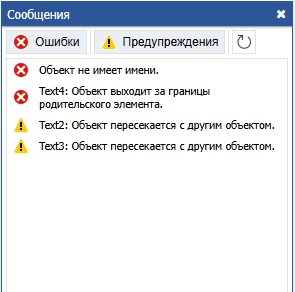 В версии 2026.1 добавлен инструмент автоматической проверки отчета на наличие ошибок и потенциальных проблем с отображением результатов в специальной консольной панели. Выполняет комплексную валидацию структуры отчета: проверяет пересекающиеся компоненты, компоненты без имени или с дубликатами имен, элементы за границами родительских контейнеров и компоненты с нулевыми размерами.
