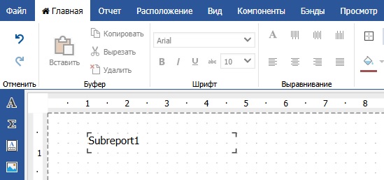 Добавлен компонент Subreport для создания иерархических отчетов. Subreport позволяет встраивать один отчет в другой, создавая вложенную структуру. Это особенно полезно для создания сложных документов, где основной отчет содержит общую информацию, а подотчеты выводят детализированные данные.
