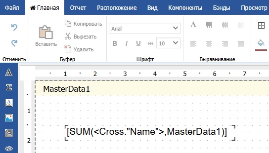 Специализированный текстовый компонент для отображения системных переменных (дата, время, номера страниц) и агрегатных функций (суммы, итоги, количество записей) в отчетах.