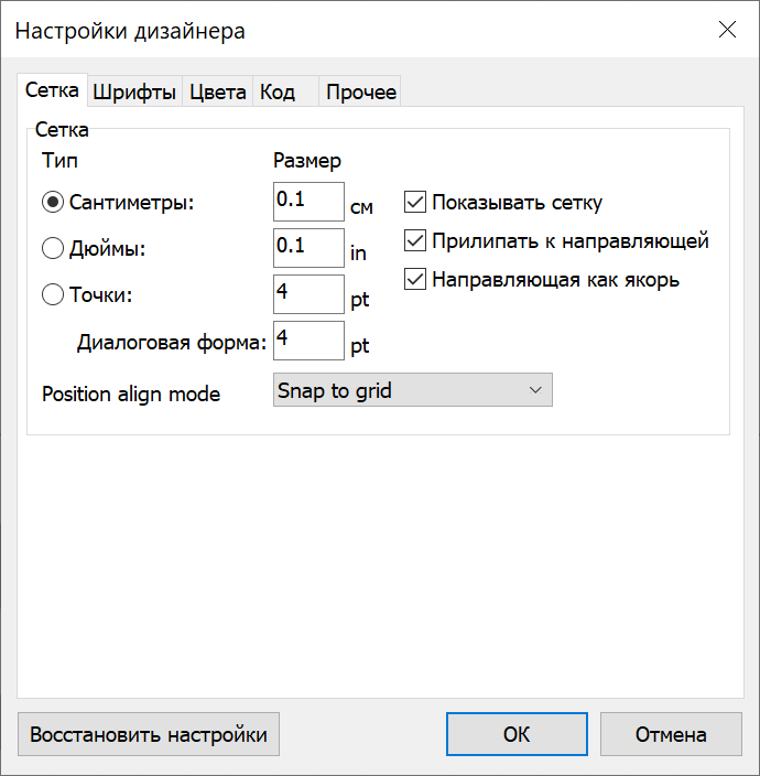 Теперь можно использовать режим выравнивания по сетке «привязать к сетке» (snap to grid). В этом режиме объекты всегда остаются на сетке при перемещении или изменении. Ранее шаг сетки использовался для объектов, и они могли перемещаться вне сетки, если изначально их не размещали на ней. По умолчанию активирован старый режим «шаг сетки». Новый режим позволяет точно выравнивать объекты даже в старых отчетах.
