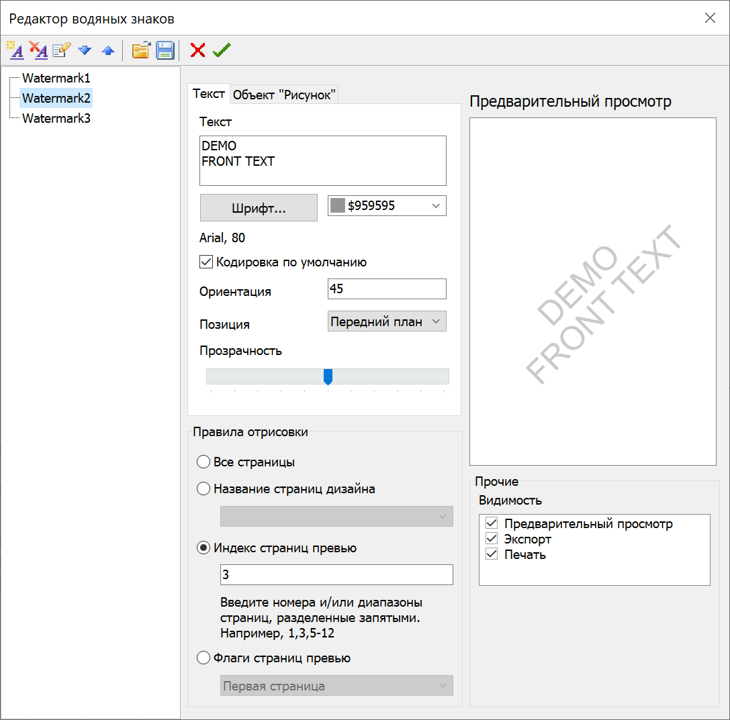 Настройки водяных знаков стали еще удобнее. Теперь можно регулировать прозрачность текста водяного знака.