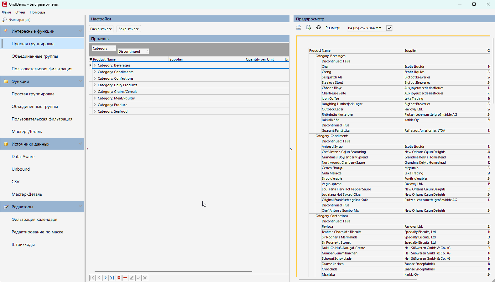 + добавлена возможность создавать сгруппированные табличные отчеты из FastGrid