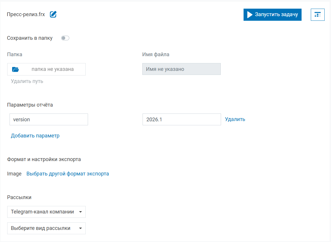 Также наиболее удобным способом отправки документов в Telegram является использование задачи экспорта с последующей отправкой. Для этого следует выбрать созданную ранее задачу отправки в Telegram из выпадающего списка в настройках задачи экспорта.