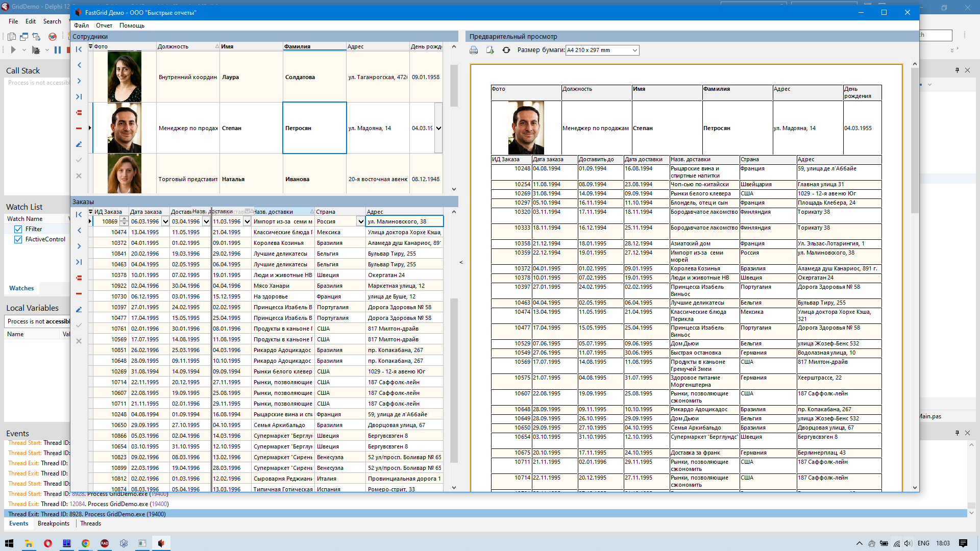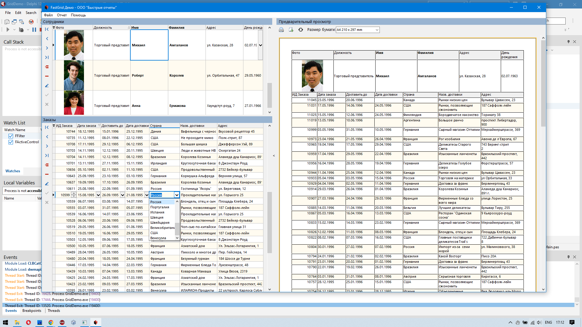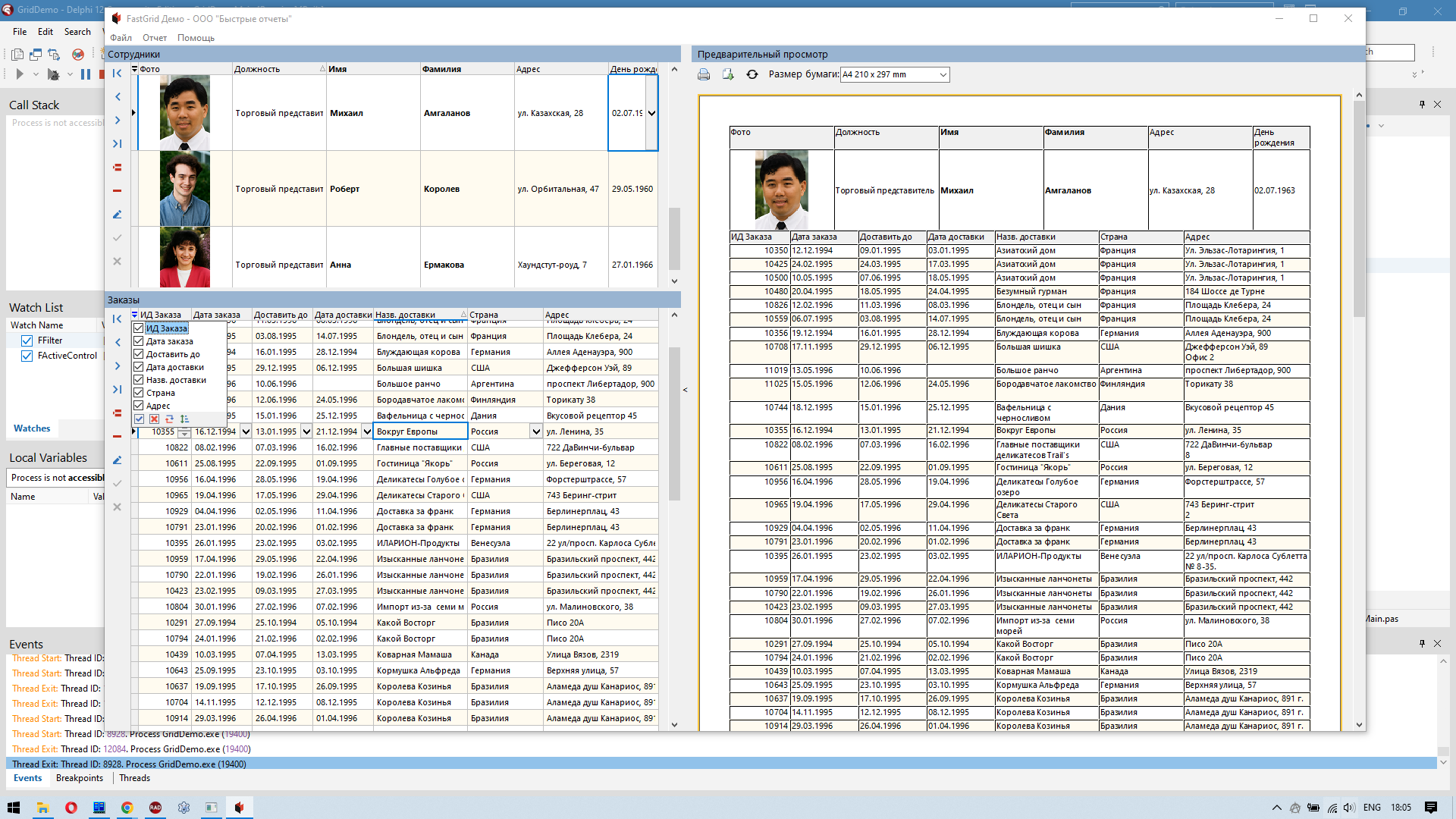 Интуитивно понятный интерфейс и высокая производительность делают библиотеку отличным выбором для пользователей любого уровня. FastGrid легко интегрируется с различными источниками данных, что значительно ускоряет разработку. Поддержка стандартного компонента TDataSource позволяет работать с разными технологиями доступа к данным, такими как FireDAC, ADO, BDE, DBX, IBX, FIBPlus, Oracle и другими.