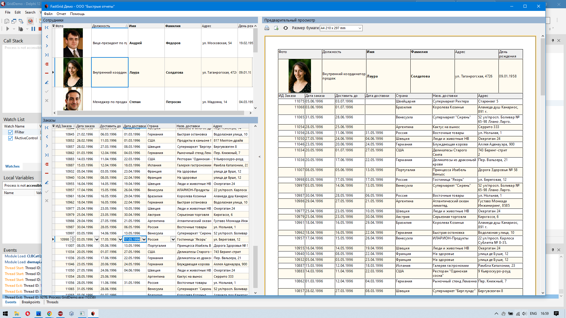 Интеграция FastGrid с мощным инструментом FastReport VCL Reporting предоставляет широкие возможности для работы с данными. Экспорт в различные форматы облегчает создание и распространение отчётов. Благодаря бесшовной интеграции двух систем, все настройки FastGrid сохраняются при экспорте, обеспечивая точность и целостность данных.