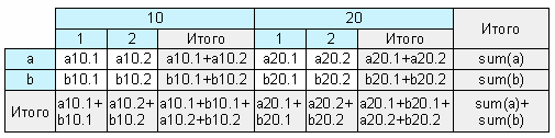 Следующий элемент таблицы – промежуточные итоги и итоги, демонстрирует следующий рисунок: