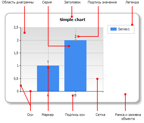 Диаграмма Microsoft Chart состоит из следующих элементов: