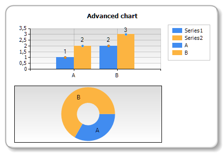 Одна диаграмма может иметь одну или несколько областей диаграммы. В каждой области может находиться одна или несколько серий. На рисунке ниже приведен пример диаграммы, которая содержит две области (в первой области - две серии, во второй - одна):