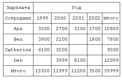 в дизайнере. В остальном работа ничем не отличается от ранее описанной. На экране построенный отчет будет выглядеть следующим образом: