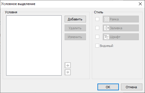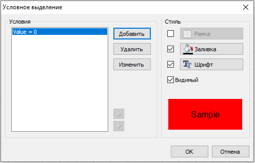 Вы можете указать, какие свойства необходимо менять при срабатывании условия. Для этого используйте флажки в правой части окна. По умолчанию новый стиль имеет одну настройку – цвет текста.