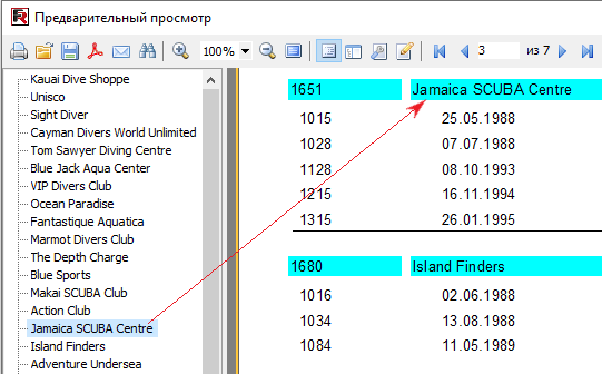 Укажем значение свойства бэнда GroupHeader1.OutlineText равным <Group."Company">. При запуске отчета мы увидим следующее: